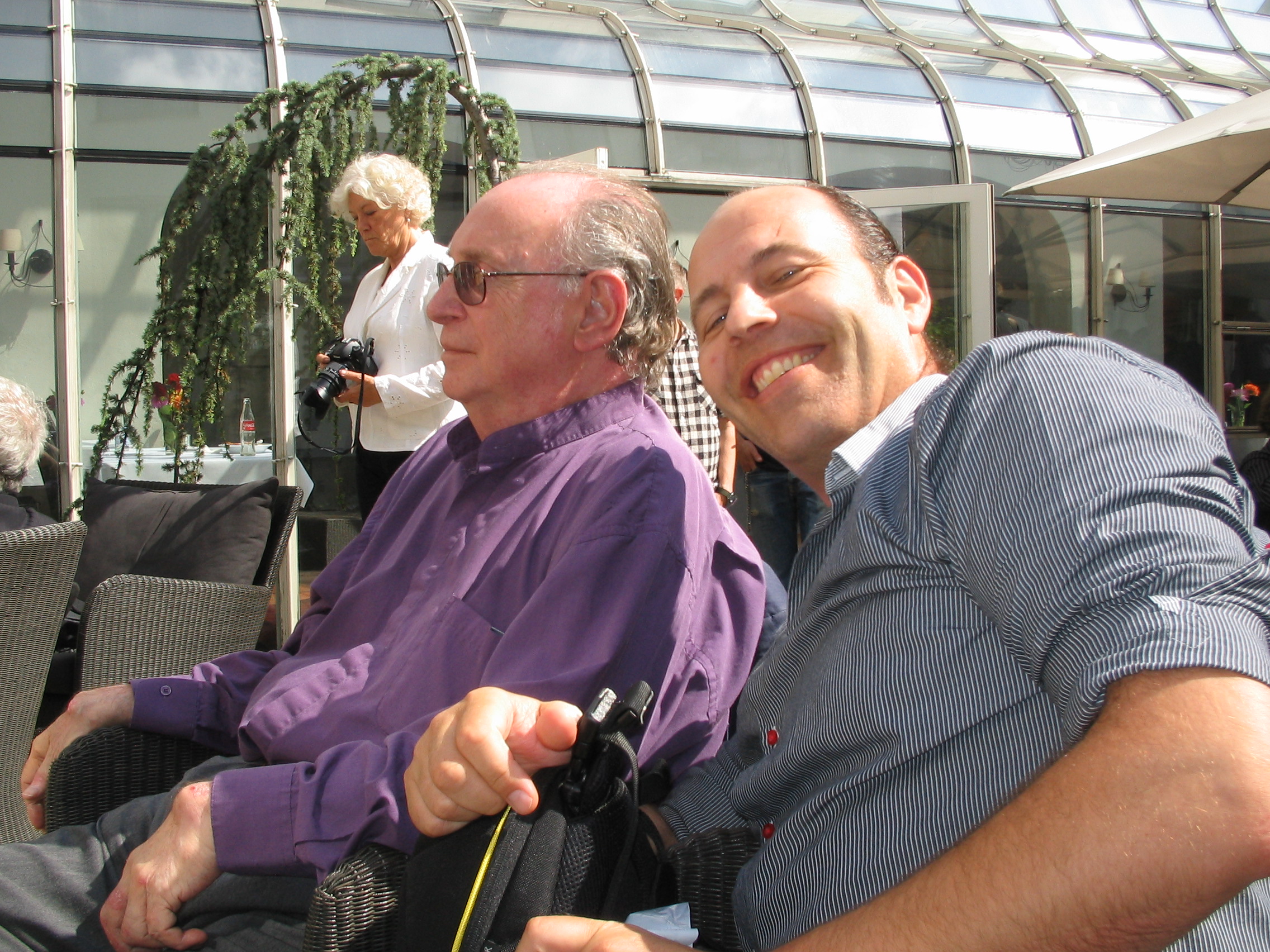 On the way to the Kong Arthur, I was remembering that last year I was introduced to a wonderful couple, Ellen Bick Assmusen and Svend Assmusen. Sven played jazz violin all over the world and is very popular in Denmark. His wife is a talented and charming writer. As Lisbeth and I drove to the Kong Arthur it came into my mind that we would sit next to the Asmussens and, lo and behold, we arrived and there were empty seats next to the Asmusens and in front of the band. For the rest of the afternoon, in between performances, we engaged in the most uplifting