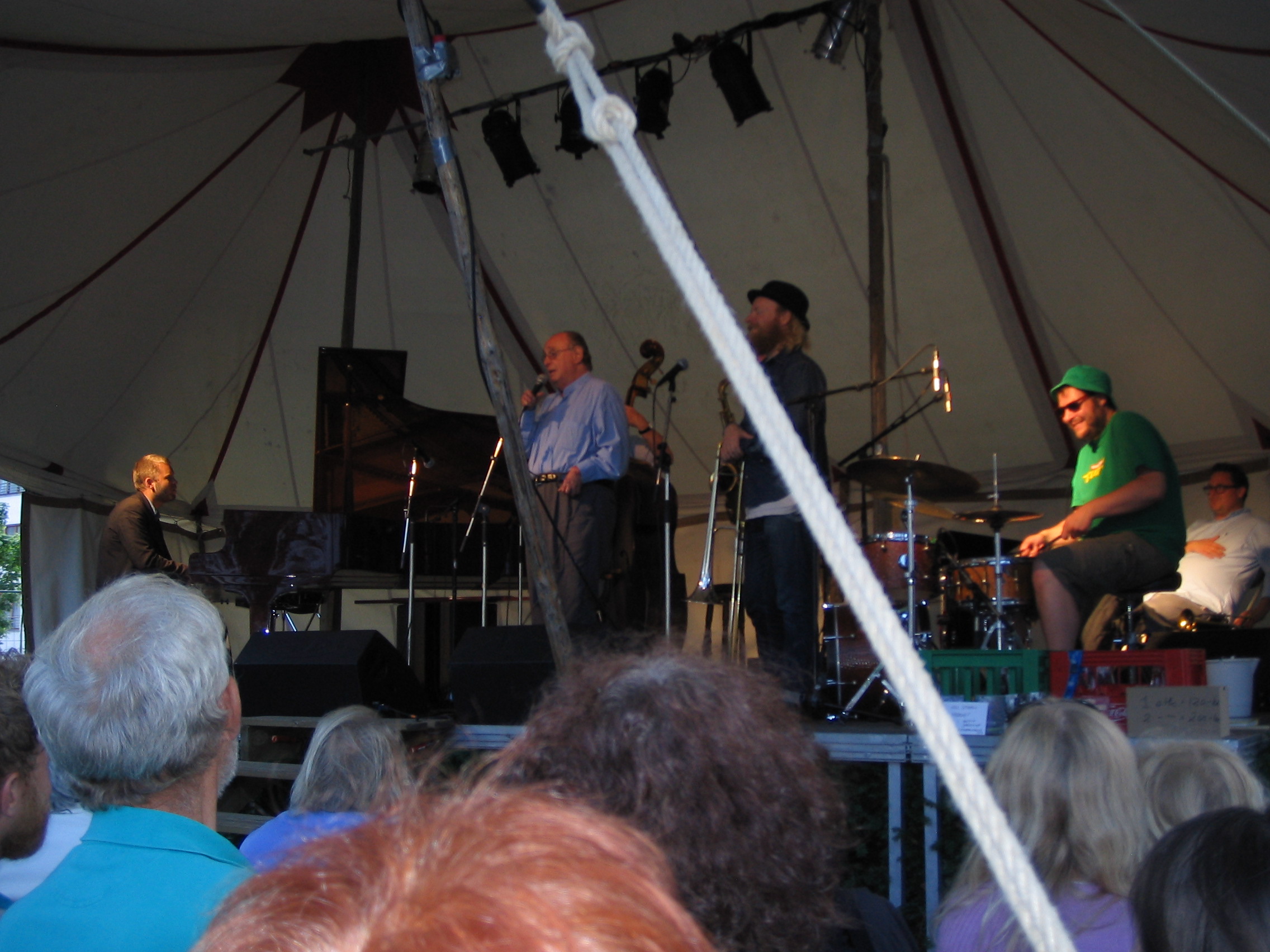 Outside a huge church, on a large lawn, once again an audience of four hundred. Bass, drums, trombone, tenor sax and piano. Under Hugo’s leadership they played sweet ballads, swinging standards and clever, interesting be-bop melodies interspersed with clever repartee. In the second set, I was preceded by a young woman named Sue Jin. She was born in Korea and raised in Norway. She is recording with Hugo. She sang ”Just a Closer Walk With Thee” with an amazing purity.